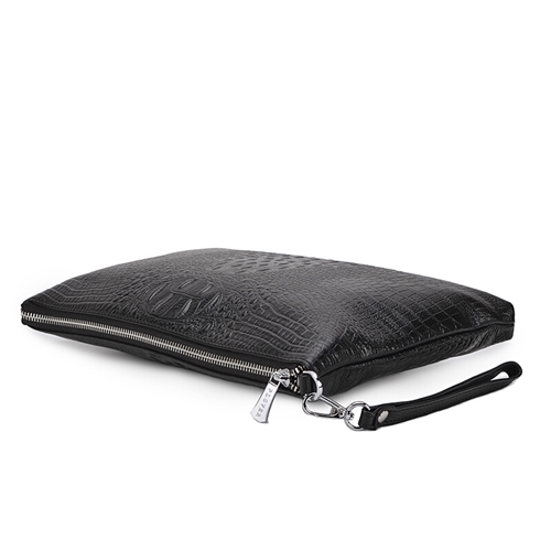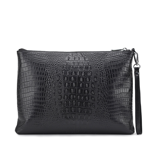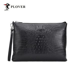 啄木鸟PLOVER新款男手包牛皮大容量信封包鳄鱼纹头层牛皮手拿包商务潮手抓男包GD9906-A 黑色