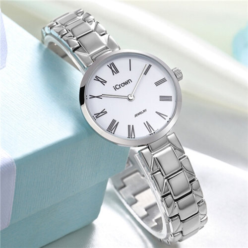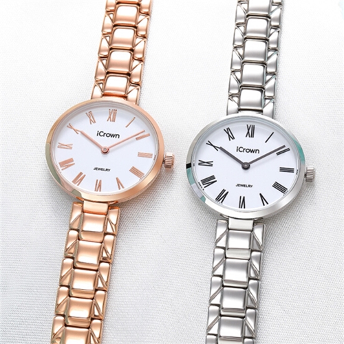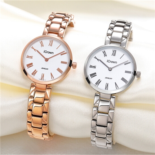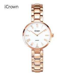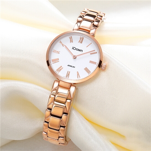 艾克朗icrown女表简约气质潮流时尚防水手表型号2461062 白金色/玫瑰金